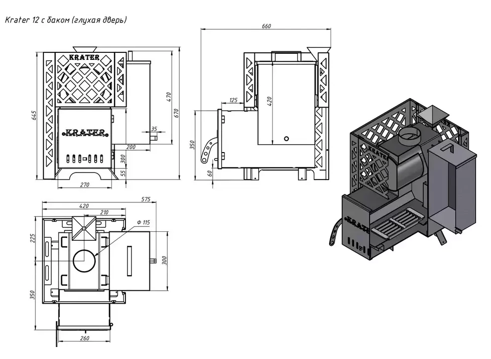 Печь для бани ЭТНА 18 (Панорама)  Закрытая каменка