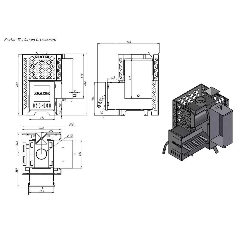 Печь для бани ЭТНА 18 (Панорама)  Закрытая каменка