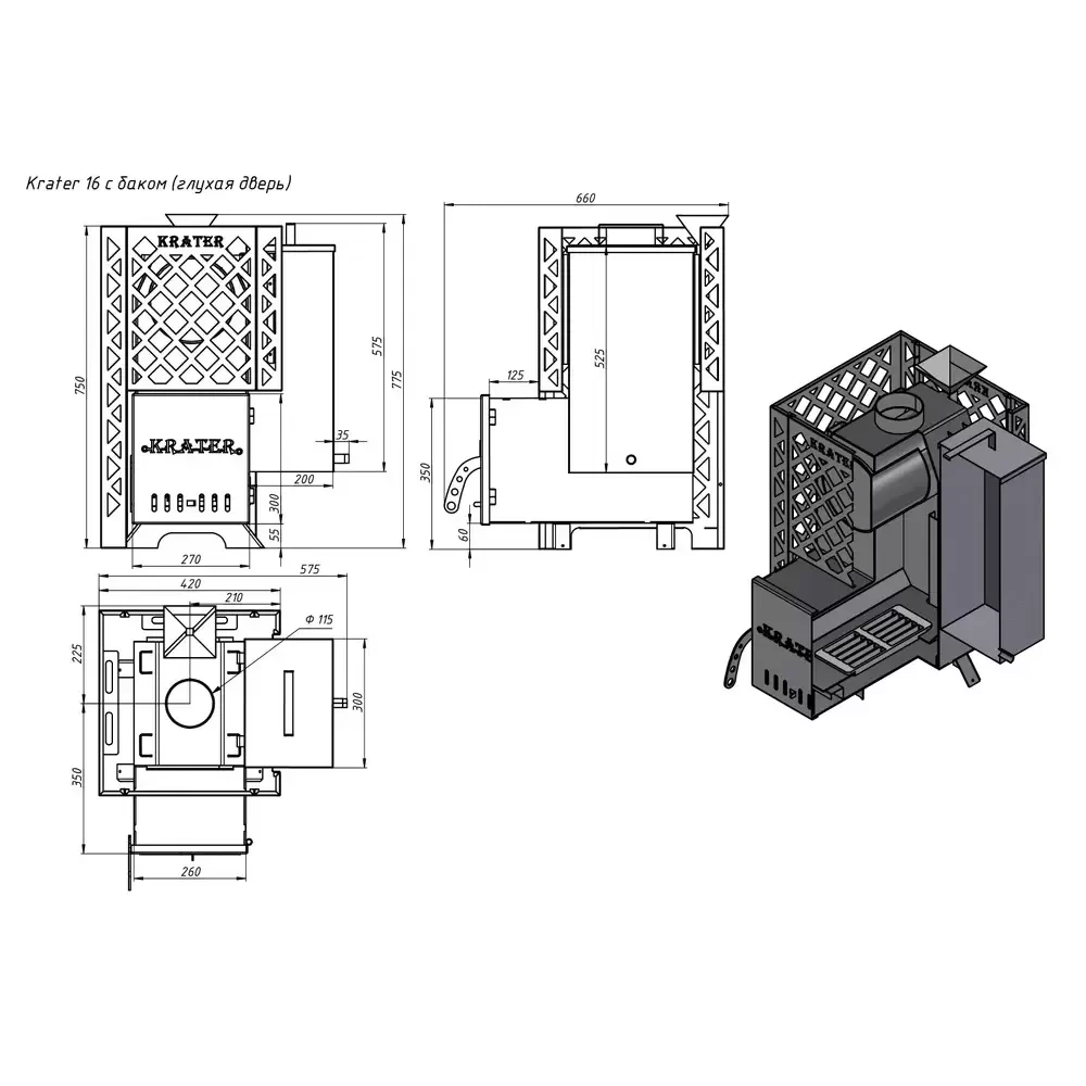 Печь для бани ЭТНА 18 (Панорама)  Закрытая каменка
