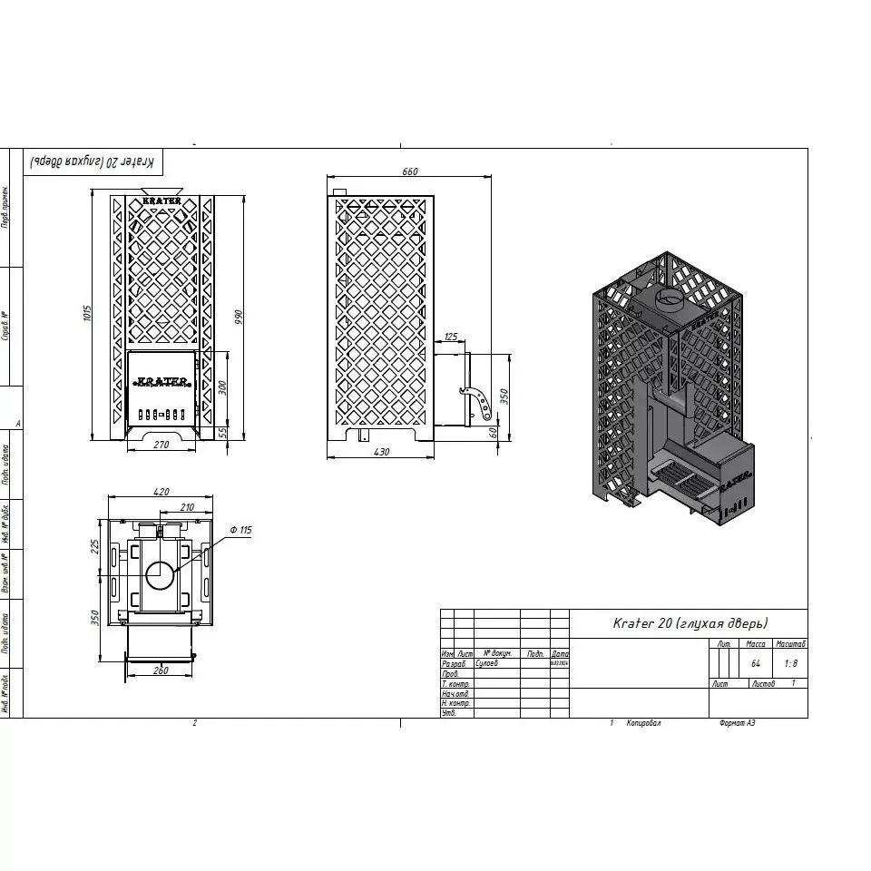 990 х 420 х 660 мм