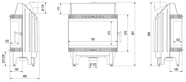 Каминная топка Kratki Oliwia/L/BS (угловое стекло слева)