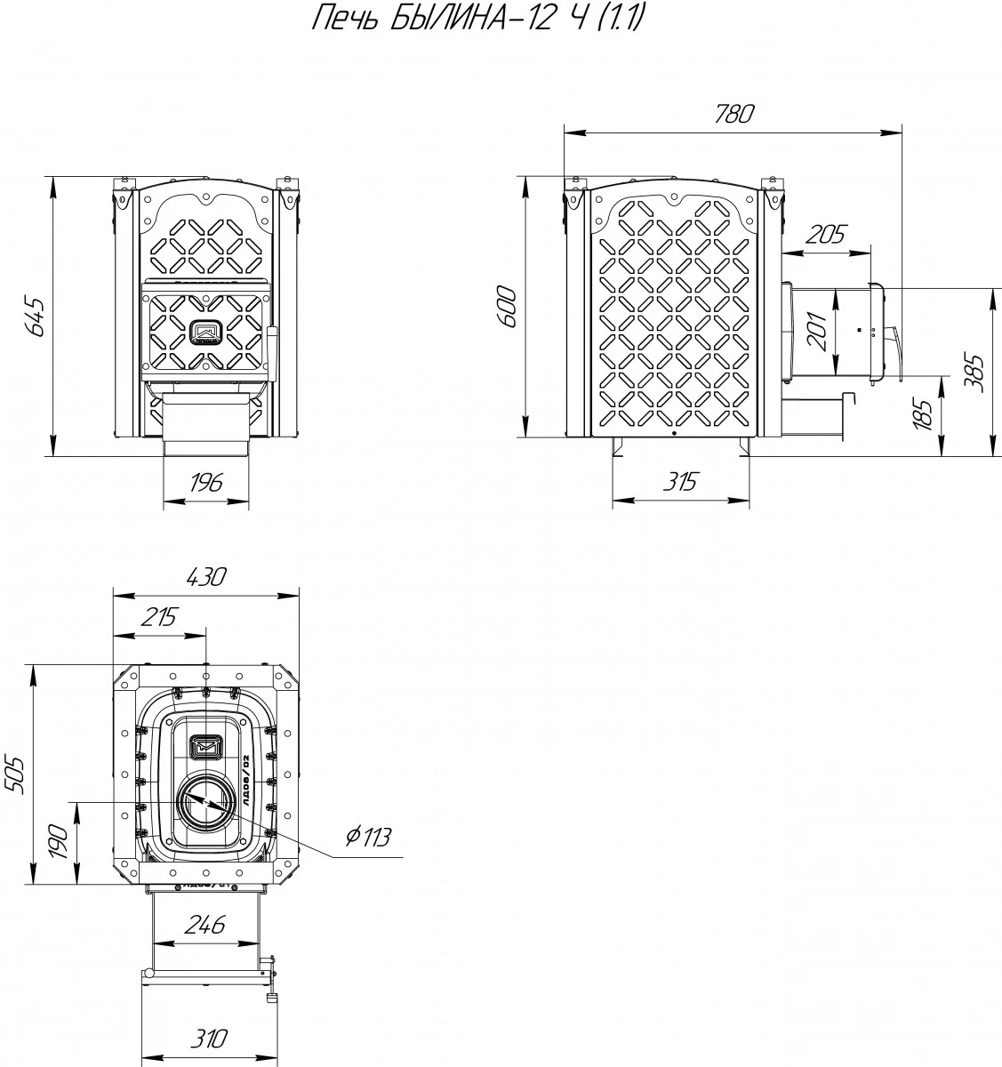 Печь для бани Теплодар Былина-12 Ч (1.1)