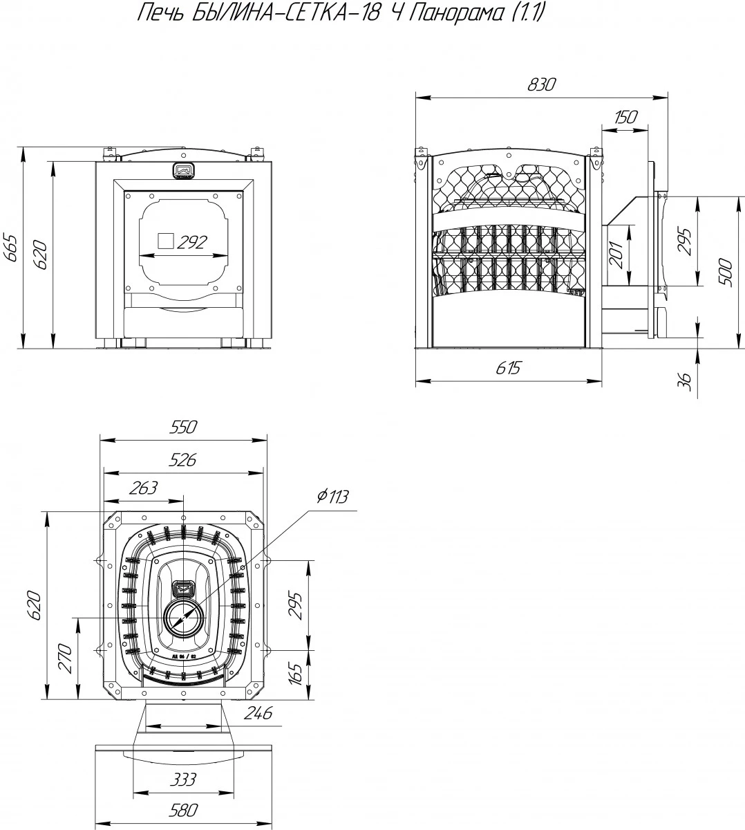 Дровяная печь для бани Теплодар Былина-18 Ч Панорама
