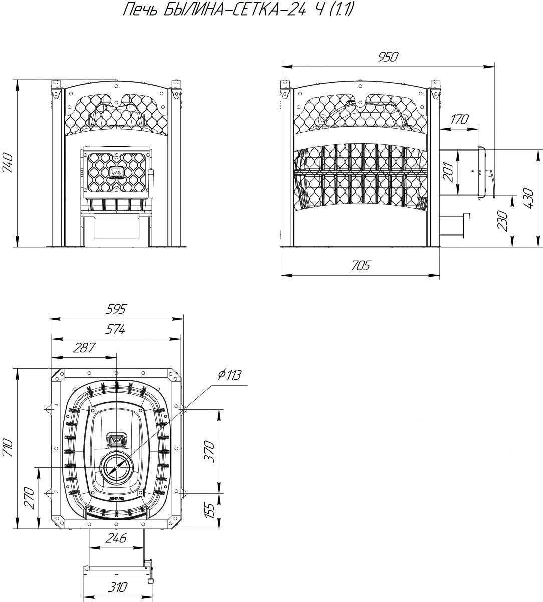 Банная печь Теплодар Былина-Сетка-24 Ч (1.1)