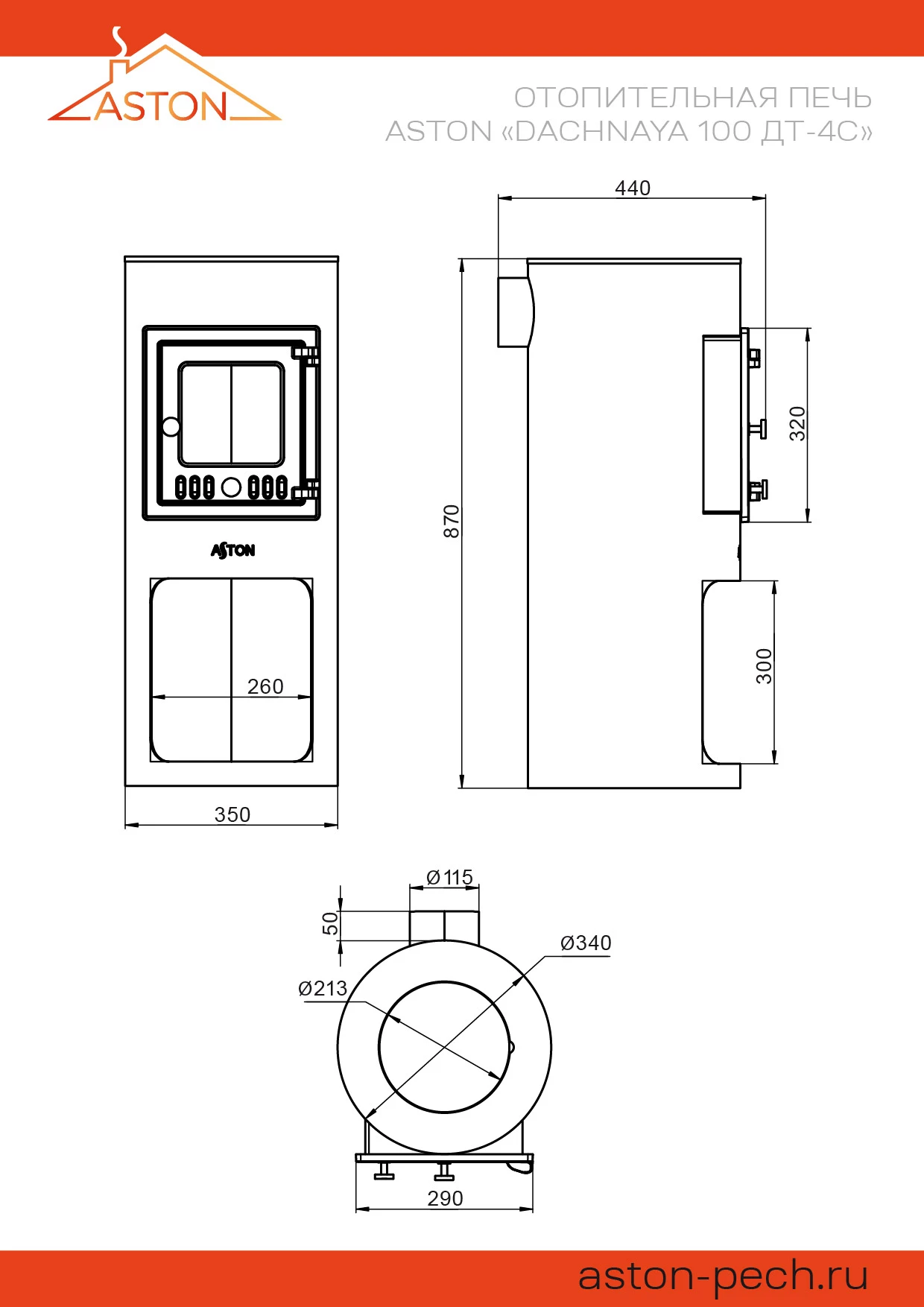 Отопительная печь ASTON Dachnaya 100 (ДТ-4С)