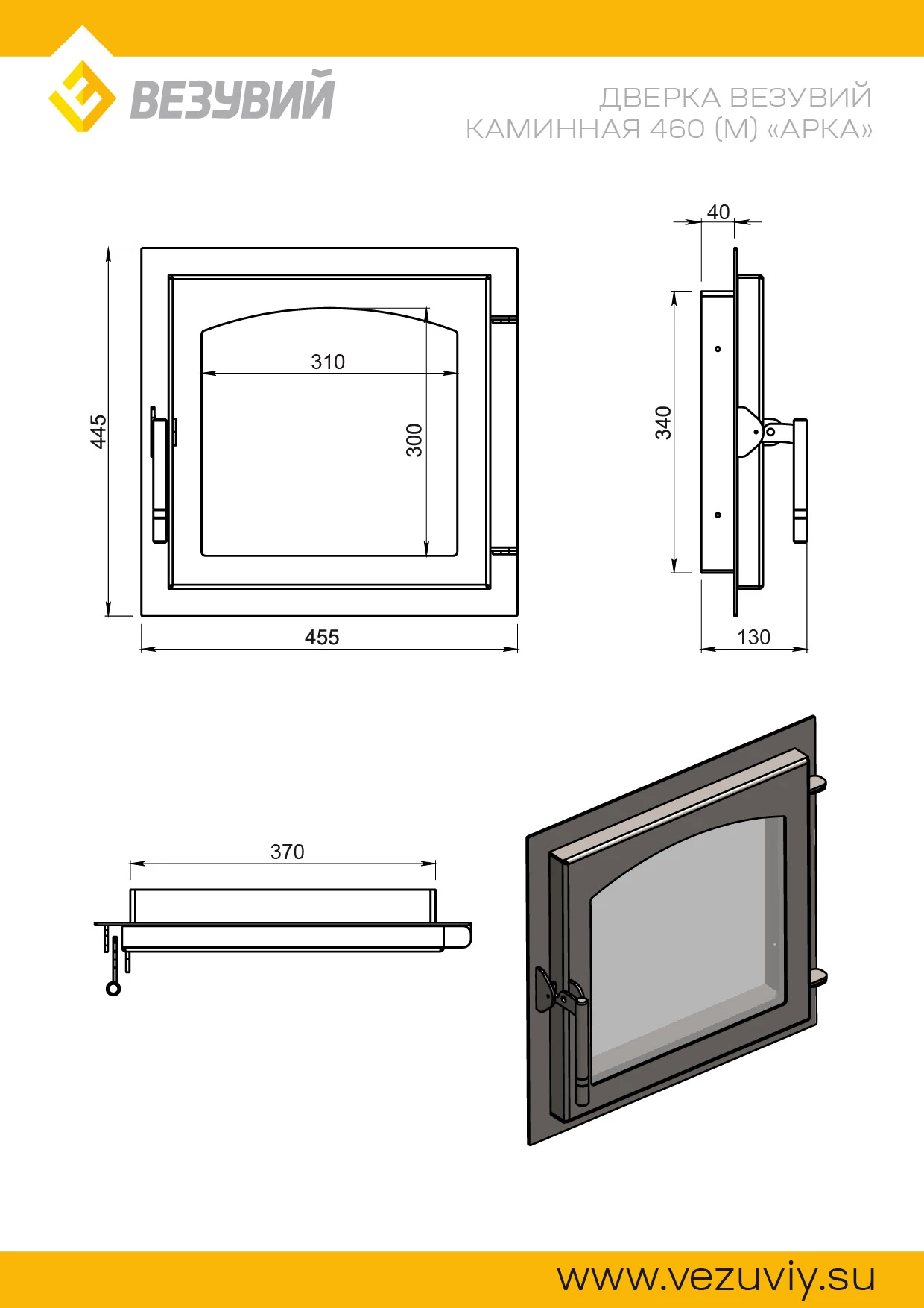 Дверка стальная каминная 460 (М) Арка 370х340 мм