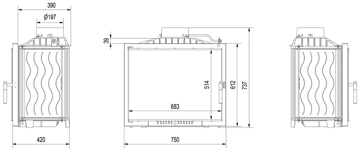 Каминная топка Liseo Castiron LCI 9 GFLR два боковых стекла