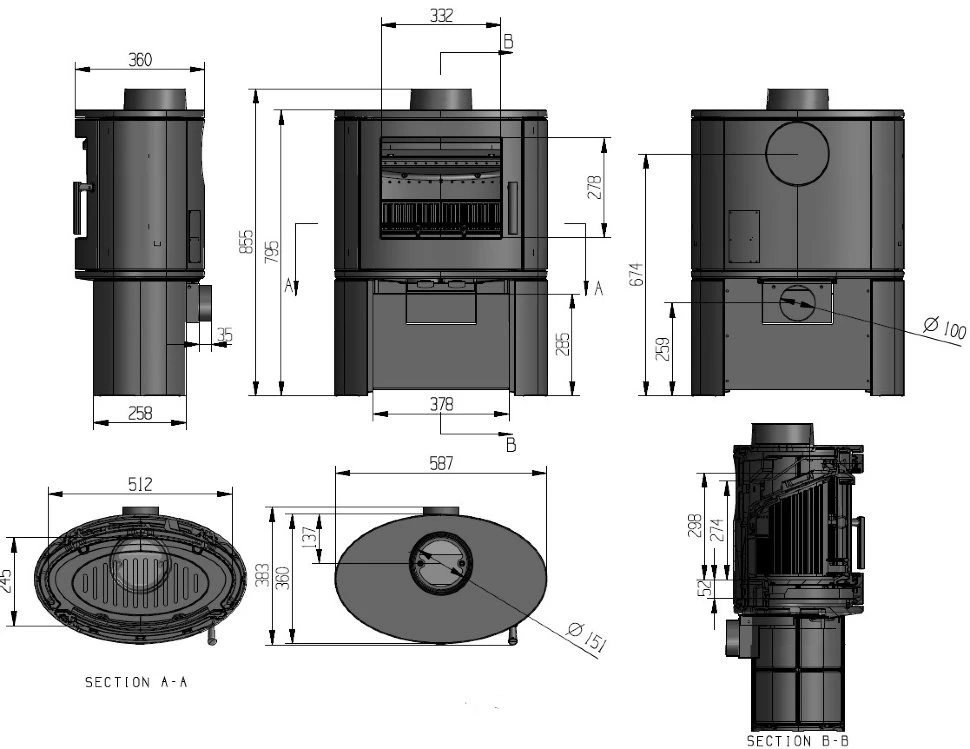 Чугунная печь Везувий ВХ-09 "Антрацит"