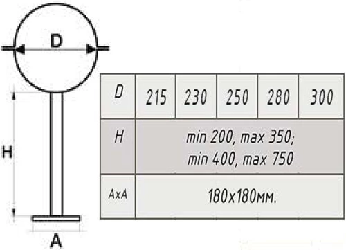 Опора напольная ,нержавеющая сталь AISI 430, Ø200*280