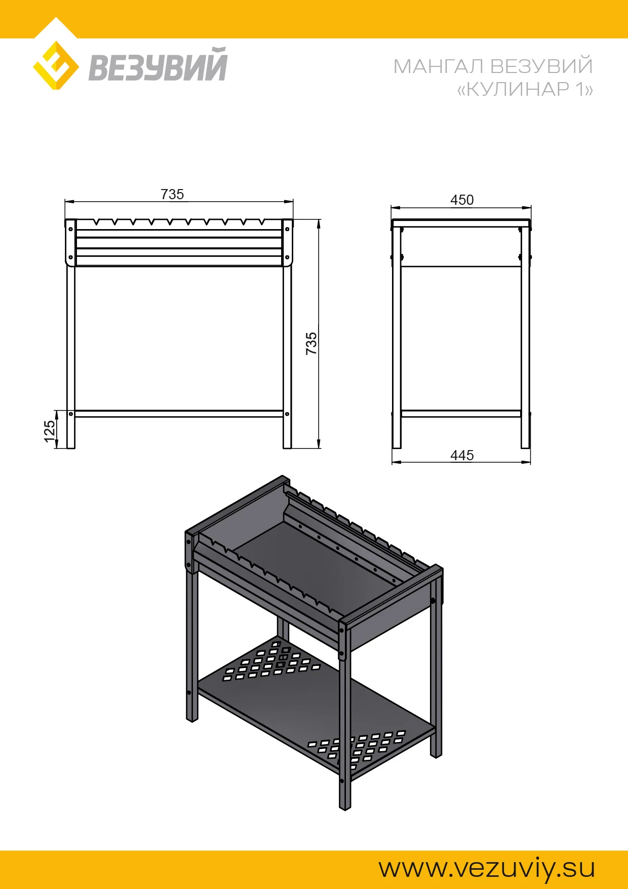 Мангал Везувий "Дачник" с чугунной решеткой "Стейк" D=450 мм на подставке