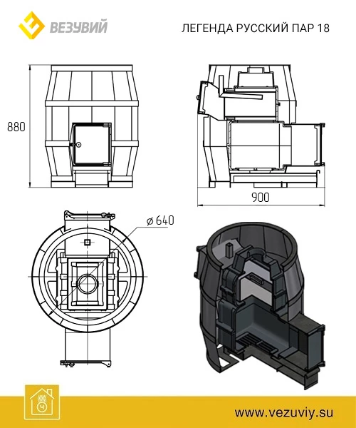 Печь для бани Везувий Легенда Русский пар 24 (240)