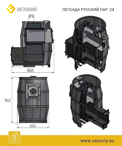 Печь ВЕЗУВИЙ Легенда Русский пар 24 (271)