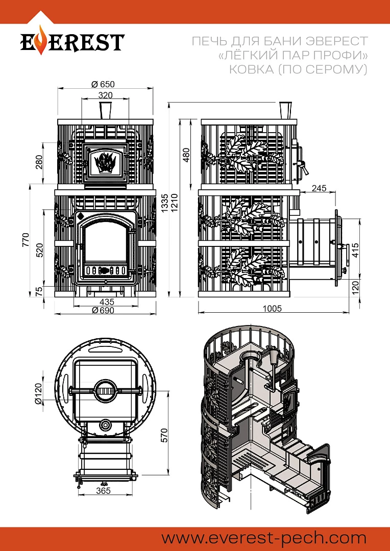 Печь для бани Эверест Легкий пар Профи Ковка по-серому