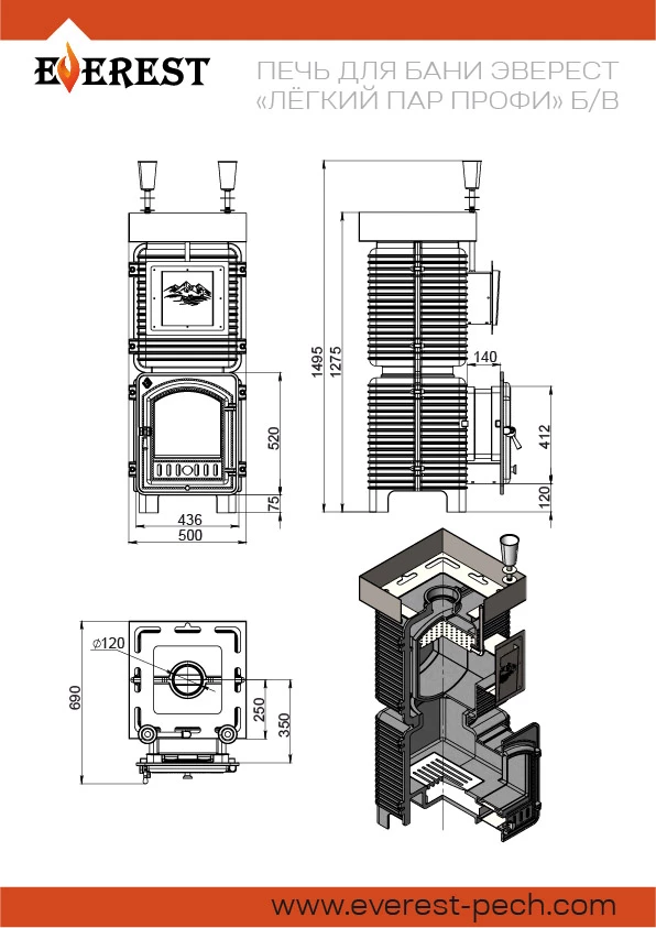 Печь для бани Эверест Легкий пар Профи Ковка по-серому, б/в