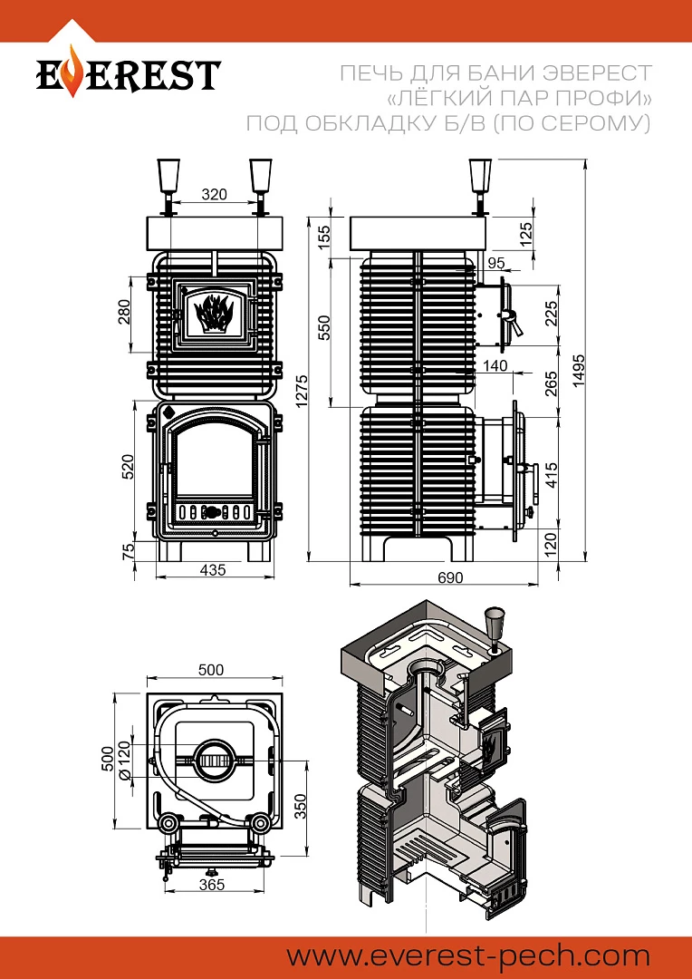 Печь для бани Эверест Легкий пар Профи по-серому (под обкладку) б/в