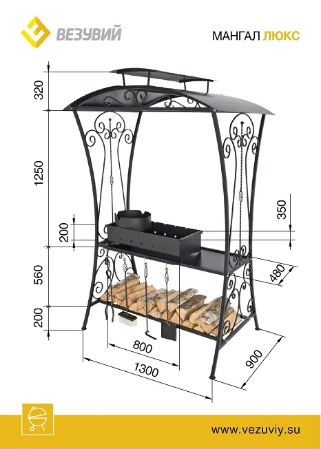 Мангал Везувий "Дачник" с чугунной решеткой "Стейк" D=450 мм на подставке