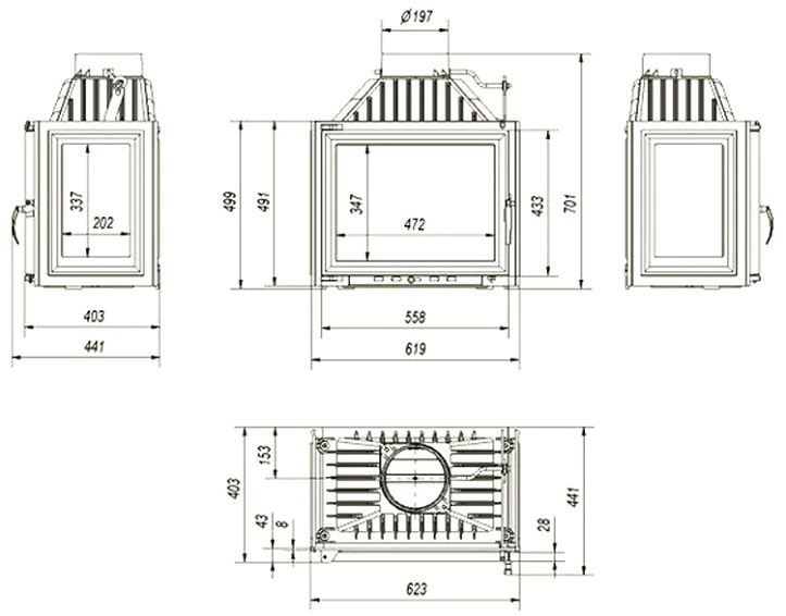 Каминная топка Kratki Simple M S P BS Правая