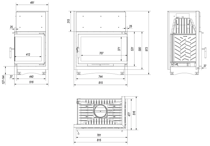 Каминная топка Liseo Castiron LCI 9 GFL стекло слева
