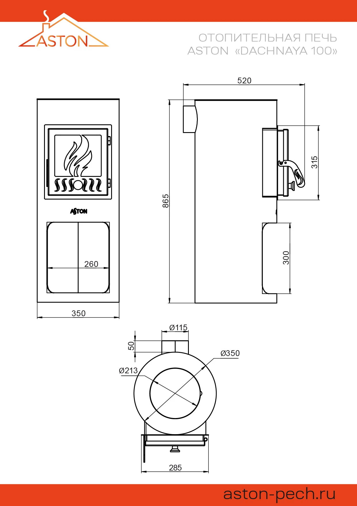 Отопительная печь ASTON Dachnaya 100