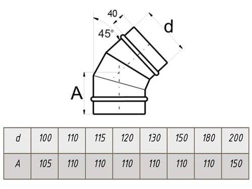 LAVA Отвод 100, угол 45*, нерж. 439 (0,5)