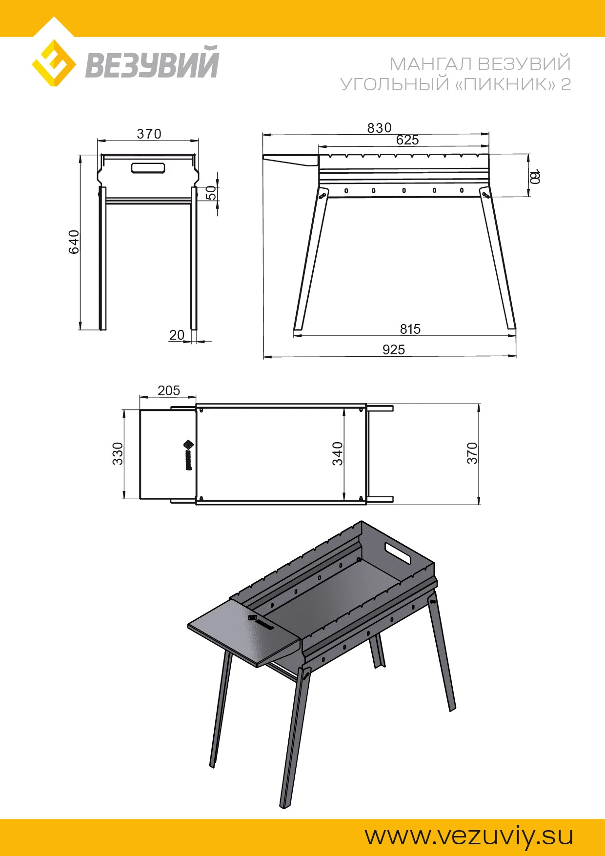Мангал Везувий "Дачник" с чугунной решеткой "Стейк" D=450 мм на подставке