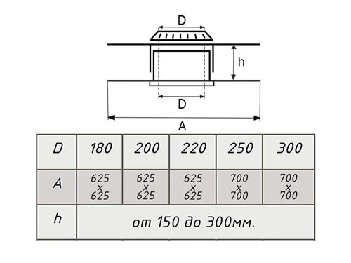 Потолочно проходной узел (430/0,5 мм + термо) max t=450°C Ø115