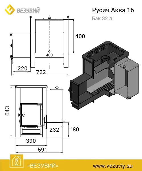 Печь для бани Везувий Русичъ Аква 16 (ДТ-4) без бака