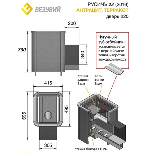 Печь для бани Везувий Русичъ Антрацит 22 (220)