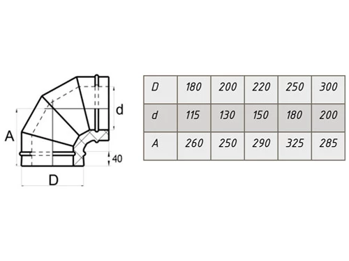 Сэндвич-отвод 200/300, угол 45*, нерж. 439 (0,5)/439 (0,5)