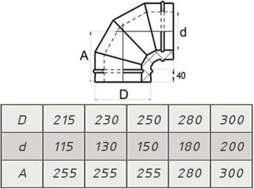 Отвод Термо 45* ОТ-Р 310-0.8/304 D200/300 (2S) с хомутом