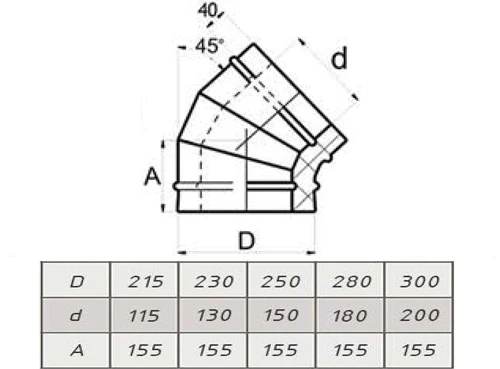 Отвод 45гр. D=150\250 Sвнутр.=0.5 aisi 304-оцинк. ФлюГранд