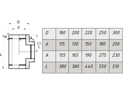 Тройник 45° DTRH D250 с изоляцией 50 мм, AISI 321/оцинкованная сталь (Вулкан)