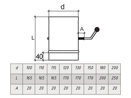 Шибер поворотный D=180\280 Sвнутр.=1.0 aisi 321-оцинк. ФлюГранд