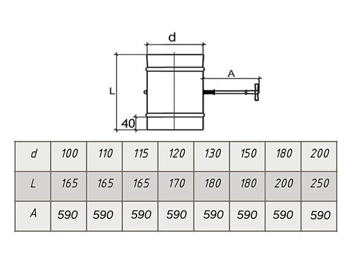 Шибер поворотный ЭЛИТ 200 мм. 304 нерж. (0,8 мм) шпилька
