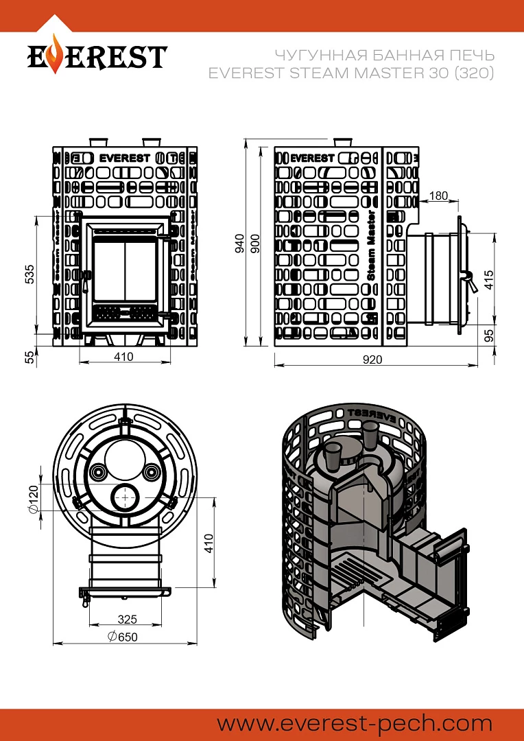 Печь для бани Эверест Steam Master 30 (320) Чугун