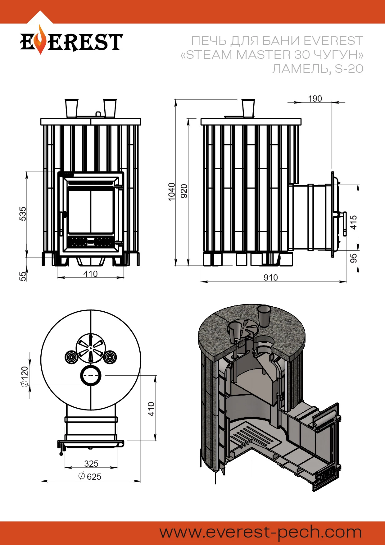 Печь для бани Эверест Steam Master 30 Чугун Ламель Талькохлорит