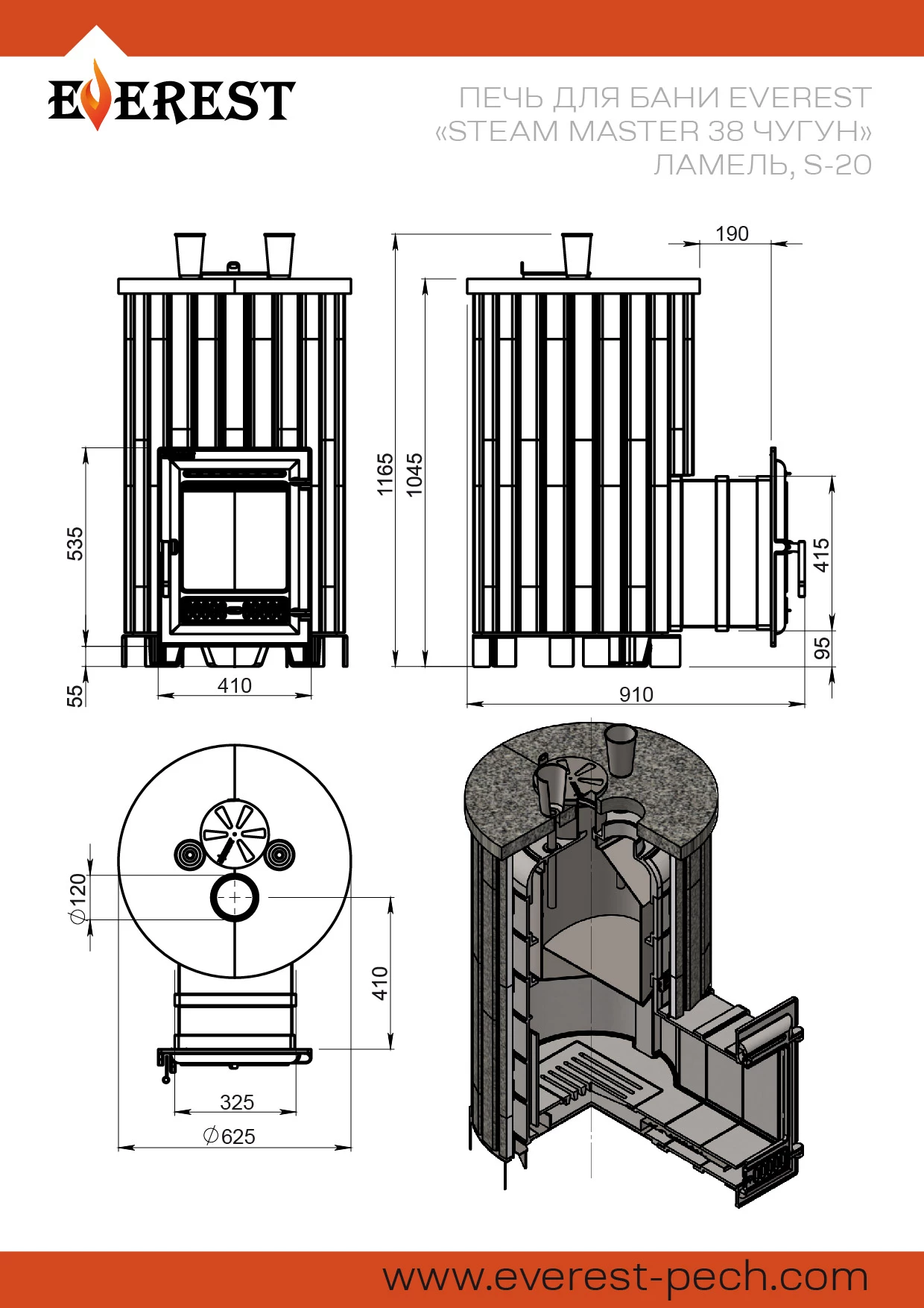 Печь для бани Эверест Steam Master 38 Чугун Ламель Пироксенит Элит