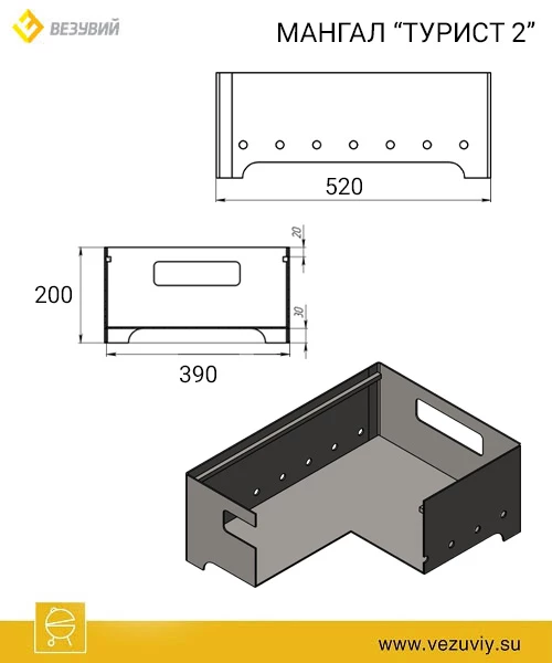 Мангал Везувий Турист №2 с решеткой чугунной "Стейк"