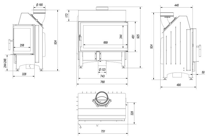 Каминная топка Kratki AQUARIO/O/12/PW/W