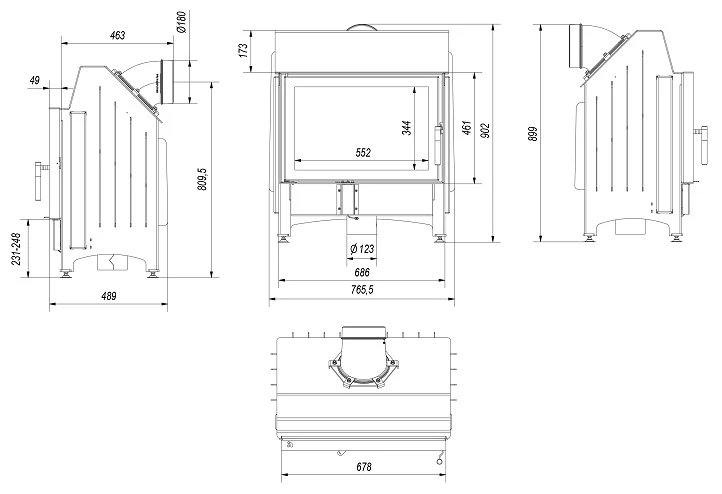 Каминная топка Kratki SMART/M/S/P/BS (угловое стекло справа)
