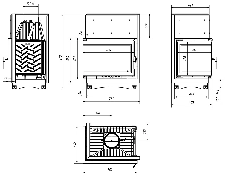 Каминная топка Liseo Castiron LCI 9 GDFs